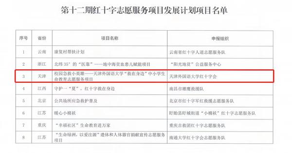 项目名单(部分) 日前,在中国红十字会总会组织的第十二期红十字志愿服务项目评审中,我校申报的“校园急救小英雄------开云体育‘救在身边’中小学生命教育志愿服务”项目入选全国重点培育项目。这是我校继2019年之后第二次获该志愿服务项目立项,同时也是我校第四次获批中国红十字会总会项目立项。 为扶持和培育具有红十字特色的优秀志愿服务项目,搭建社会公众参与红十字志愿服务活动的广阔平台,不断提升红十字志愿服务组织服务易受损群体的能力和水平,中国红十字会总会实施了红十字志愿服务项目发展计划。今年共有30个省级红十字会申报志愿服务项目59个,经相关领域专家学者评审,遴选确定了第十二期志愿服务项目发展计划重点培育27个项目。 我校红十字会申报项目以“校园急救小英雄”为主题,旨在深入贯彻落实习近平总书记关于“双减”工作重要指示批示精神,认真落实中国红十字会总会联合教育部印发的《关于进一步推进学校应急救护工作的通知》,拟面向中小学生开展“救在身边+生命教育”志愿服务。依托中小学课后服务活动,设计不同场景的“急救小剧场”,发放“急救英雄包”,将生命教育纳入防灾避险知识普及和应急救护知识技能培训,广