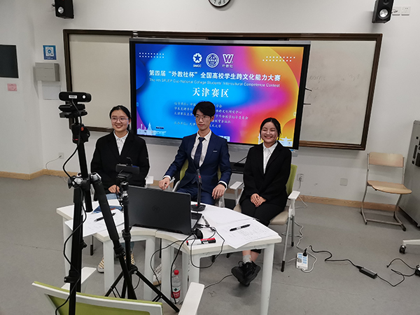 线上参赛 录制参赛视频 获奖证书 12月4日,第四届“外教社杯”天津市高校学生跨文化能力大赛天津赛区决赛在线上顺利举行。我校由2020级汉语言文学专业肖子健、董珂廷、李镕廷组成的参赛团队,以总成绩第一摘得桂冠,荣获特等奖,并闯入全国总决赛。 通识教育学院刘颖、尚春瑞,以及国际传媒学院侯正通老师担任本次参赛团队的指导教师,从跨文化视角出发,针对团队进行系统培训,找出切实创新的文化冲突解决对策。在学校选拔赛和天津市复赛阶段,团队以“The greatest poet in China”为题,全方位、多角度剖析了诗歌文化中蕴含的跨文化交际内容,讲述中国故事、展示中国文化的同时,剖析了不同国家以及文化圈的文化差异。参赛团队一路过关斩将,获得校内选拔赛特等奖、天津市复赛一等奖,并成功晋级市级决赛。 市级决赛共分案例分析、快速问答以及讲中国故事三个展示环节。我校参赛队伍结合文化冲突四阶段、文化冰山、刻板印象、高低语境等跨文化理论进行了详细分析,展现了良好的精神面貌和优秀的综合素质,最终凭借丰富的知识储备、缜密的逻辑思路、扎实的语言功底,从五支决赛团队中脱颖而出斩获桂冠。 本次“外教社杯”天