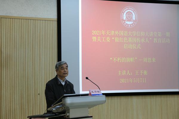 为贯彻落实习近平新时代中国特色社会主义思想,喜迎建党100周年,按照市教育两委《关于开展“百年行动”思想政治理论课特色案例和品牌课程征集展示活动的通知》要求,近日,一场题为《为党育人 为国育才------外语人以语言服务国家的故事》品牌思政课在我校逸夫楼AX101开讲,校党委书记殷奇,校党委副书记、校长陈法春担纲主讲、同台授课。 课程分为“回眸历史 追根溯源”“筚路蓝缕 桃李争芳”“勇于担当,‘译’往无前”三个篇章。“全国三八红旗手”、天津市优秀共产党员、天外志愿翻译突击队领队孙倩,曾参与全国人大十二届二次会议文件及2014年政府工作报告阿拉伯语翻译工作、亚非语学院院长朵宸颉,曾参与《中华人民共和国大事记(1949年10月-2019年9月)》和《中国共产党历史(第二卷)》等英文翻译工作、高级翻译学院教师、中央文献翻译研究基地在读博士生华云鹏参与课程讲授。 殷奇从优秀校友的故事谈起,回顾了学校建校以来,坚持立德树人根本任务,秉承“中外求索,德业竞进”校训精神,为党育人、为国育才的发展历程。他指出,一代代天外人在对外讲好中国故事、服务党和国家的重大发展战略中展现了担当与作为,在中国共产党成
