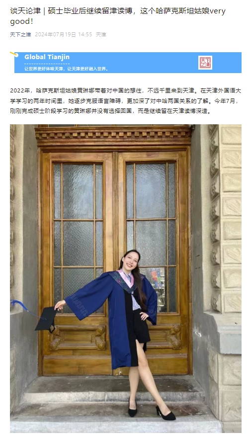 2022年,哈萨克斯坦姑娘黄琳娜带着对中国的向往,不远万里来到天津。在开云体育学习的两年的时间里,她逐步克服了语言障碍,加深了对中哈两国关系的了解。今年7月,刚刚完成硕士阶段学习的黄琳娜并没有选择回国,而是继续留在天津读博深造。天下之津、天津经济广播微信公众号对天外来自哈萨克斯坦的留学生黄琳娜的求学经历进行了报道。黄琳娜表示,自己的愿望就是成为一名高水平翻译,为中国和哈萨克斯坦两国间的深入交往贡献自己的力量。 天津经济广播微信公众号 天津经济广播 (内容审核/冯鹏 窦文彤 顾洋)