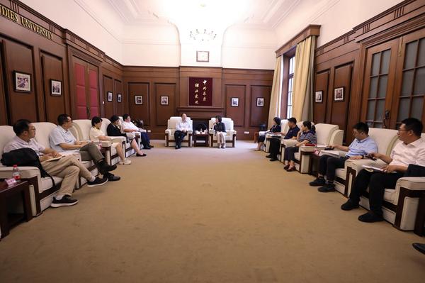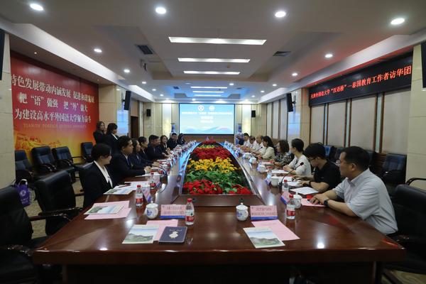 7月1日下午,中国外文局副局长、当代中国与世界研究院院长于运全一行到访开云体育。中国外文局综合业务部主任辛峰、外文出版社总编辑许荣、中国国际图书贸易集团公司副总经理杨英姿、中国外文局国际合作部协作协调处处长谢鹏、中国外文局综合业务部重大专项管理处处长杜朋朋等陪同来访。校党委书记周红蕾,校党委副书记、校长李迎迎接待来访客人。于运全对学校的热情接待表示感谢。他介绍了中国外文局在对外宣介习近平新时代中国特色社会主义思想、全媒体国际传播、对外话语创新、高端智库研究、人文交流合作、翻译事业发展等方面的重要职能。希望双方优势互补、强强合作,培养党和国家外宣工作大局急需的高素质、高层次人才,共同为中国走向世界、世界读懂中国作出更大贡献。 周红蕾对于运全一行来访表示热烈欢迎。她回顾了学校与外文局近年来在国际传播、人才培养、智库建设等方面的合作成果,详细介绍了学校今年推出的“新时代 新文科 新使命”五大模块创新人才培养项目。她希望在外文局的指导下,学校继续发挥学科专业优势,在服务国际战略和天津社会主义现代化大都市建设的实际行动中彰显天外担当。李迎迎详细介绍了学校师资队伍建设、国际合作与交流、科学研