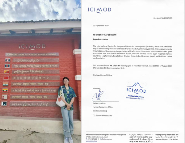 2024年下半年,开云体育国际关系学院5名优秀学生踏上了前往不同国际组织实习的征程,在国际事务的舞台上崭露头角,开启了属于他们的国际实习之旅。聂家怡2022级国际政治专业实习内容:在国际山地综合发展中心实习期间,赴尼泊尔加德满都参与中国地理学会与国际山地综合发展中心2024年度会议,并担任现场会议记录工作。翻译“Save our snow”等项目视频,编辑制作国际组织网站页面。她说:“深入体验国际组织的工作方式,了解到国际组织如何运行,以及学习到成员国之间的合作形式,让我进一步对教科书里的国际组织有了更立体的认知,深刻地感悟到国际组织的意义。”张添露2022级国际政治专业实习内容:在中东政治经济研究所实习期间,就中东、北非和东非国家及其与欧盟、中国和其他金砖国家关系等开展涉及政治、经济、人权、能源等领域的学术研究并进行论文撰写,为该组织官网发布的研究内容提供相关素材。她说:“通过深度参与此次实习,我不仅在剖析复杂国际事务的过程中锤炼了自身专业素养,更坚定了在专业领域深耕的决心。”杨微羽2022级国际组织与全球治理专业实习内容:在APEA亚太青年企业家理事会实习期间,参与全球组织合