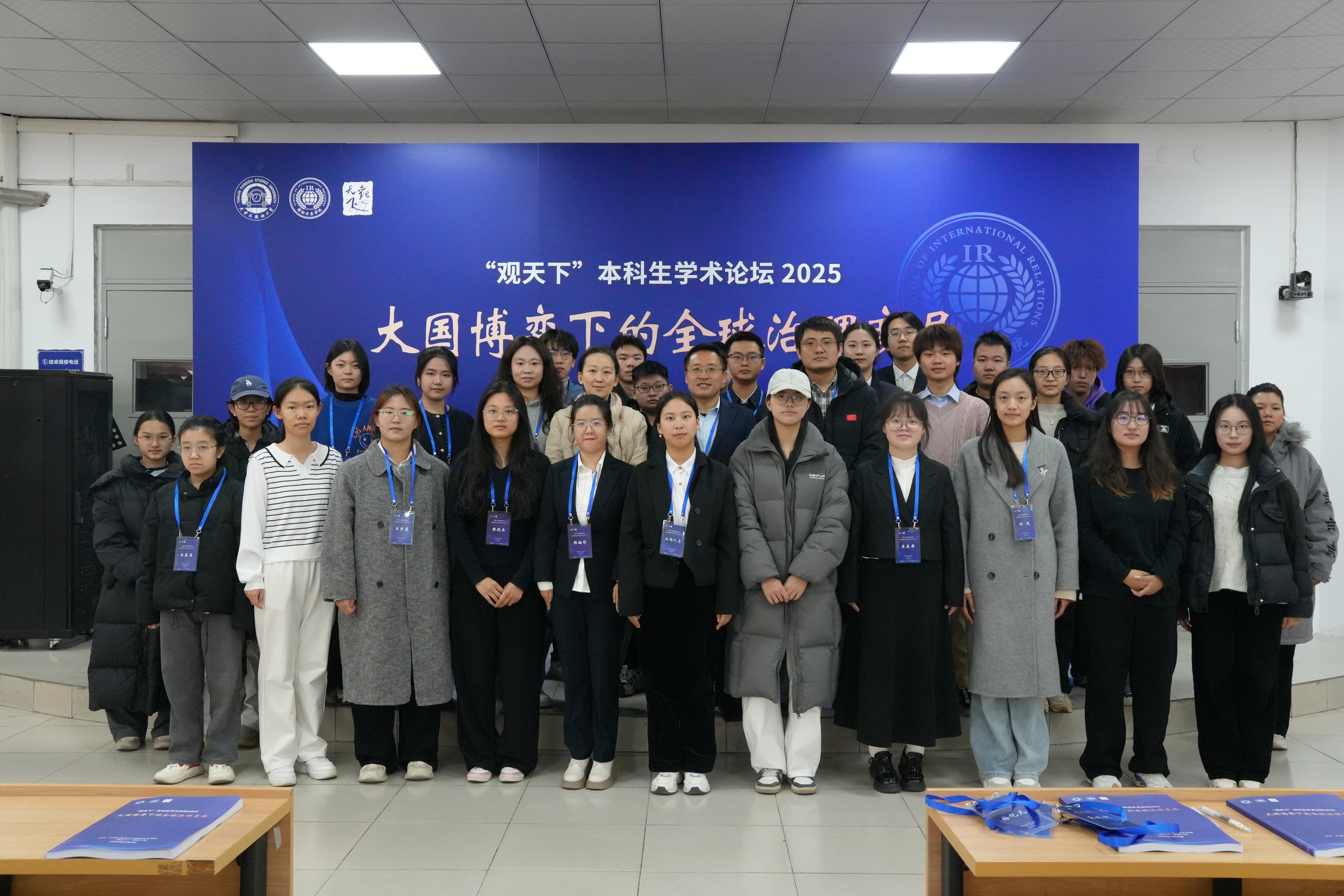 12月6日,国际关系学院首届本科生学术论坛2025在滨海校区第一教学楼成功举行。本次论坛由国际政治大类专业“观天下”学研小组主办,聚焦“大国博弈下的全球治理变局”的主题,来自国际政治、外交学、国际组织与全球治理等专业的近四十名学生参与了论坛活动。学院党委书记史延鹏、副院长王梦、指导教师王海凡、袁媛参加本次论坛。开幕式伊始,“观天下”学研小组23级外交学胡致远、王子林代表学研小组向到场的师生表示了热烈欢迎和诚挚谢意,并介绍“观天下”学研小组的基本情况和主要活动概况。史延鹏在致辞中,肯定了本科生自发进行学生活动的意义,并对“观天下”学研小组筹办本次论坛、两位指导教师的辛苦劳动表示感谢;鼓励同学们要