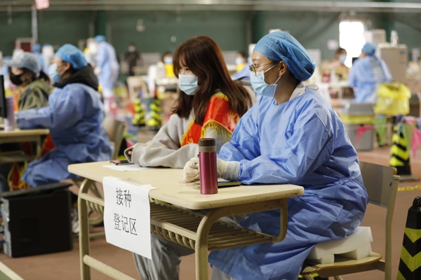 在医护人员和师生共同参与的全流程演练后,28日下午,我校新冠疫苗接种工作正式启动。第一批接种疫苗的学生在志愿者的带领下,排着整齐的队伍进入接种点。填写表格、登记身份信息、接种疫苗、留观区等候,接种现场井然有序,各环节工作有条不紊地持续推进。