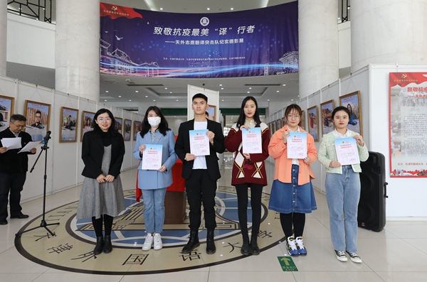 为开展好党史学习教育,从党的伟大奋斗历程中汲取智慧和力量,弘扬抗疫精神,传承优良作风,3月29日下午,我校在马场道校区举办党史学习教育系列活动“致敬抗疫最美‘译’行者------天外志愿翻译突击队纪实摄影展”启动仪式。天津市摄影家协会秘书长包静,市外办协调处四级调研员、市外办疫情防控口岸组志愿者服务负责人边元元,团市委社会联络部副部长张晓萌,我校党委书记殷奇,校党委副书记、校长陈法春,校党委副书记胡志刚,派驻纪检监察组组长于富来出席活动,党委宣传部、校团委负责同志,天外志愿翻译突击队师生代表参加活动。活动由校党委常委、宣传部部长郭太主持。