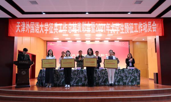 为深入贯彻落实习近平总书记强军思想,表彰征兵工作先进典型,激发天外学子参军爱国热情,推动征兵工作常态化、高质量发展,5月14日下午,我校在马场道校区大学生活动中心召开征兵工作总结表彰会暨2021年大学生预征工作动员会。校党委副书记胡志刚、河西区人民武装部政委邢勇出席会议并讲话。