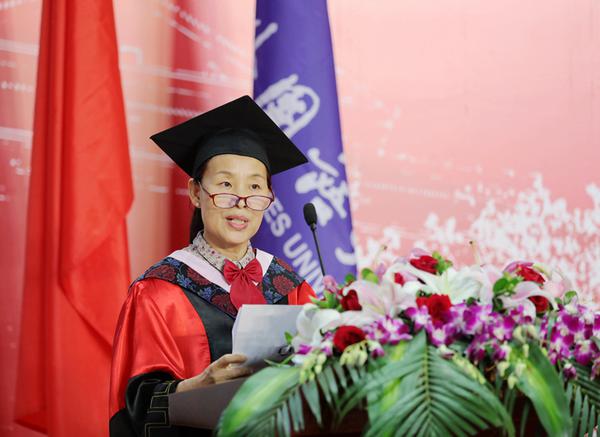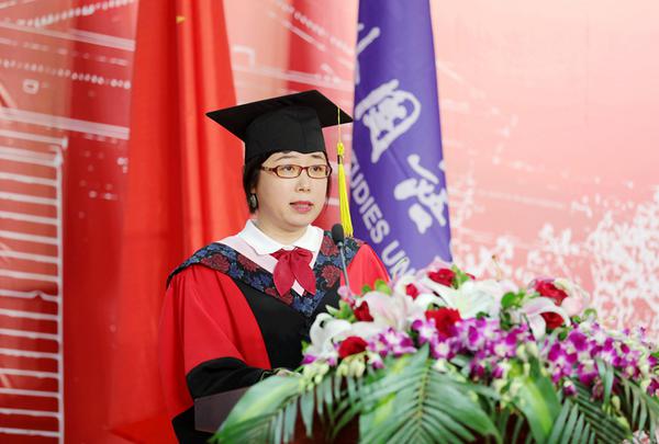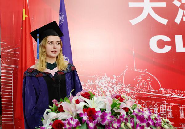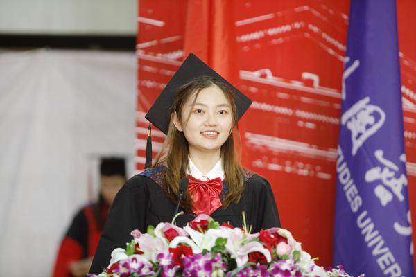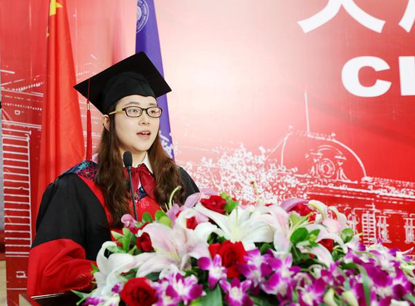 毕业生代表国际教育学院达丽娅发言