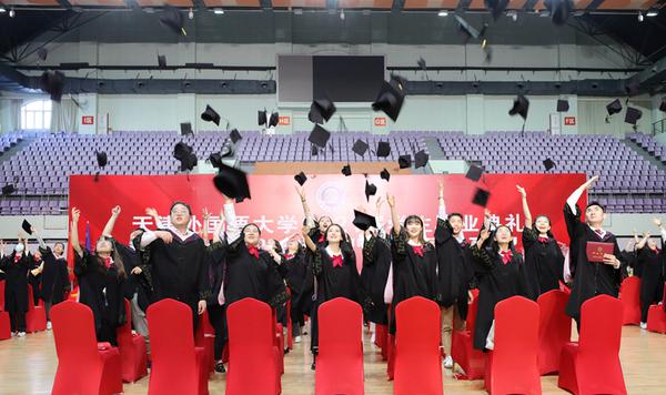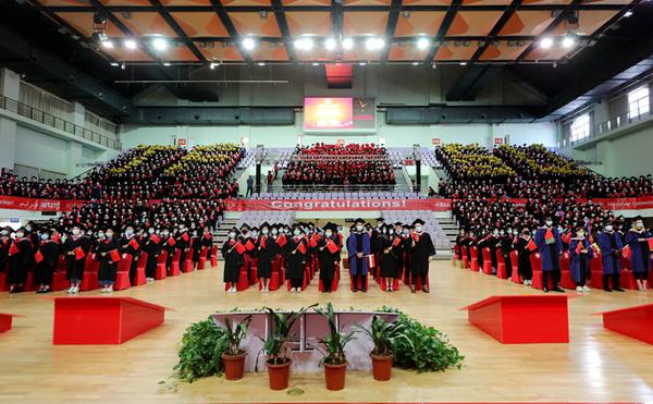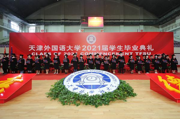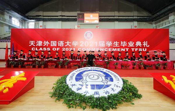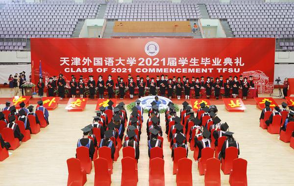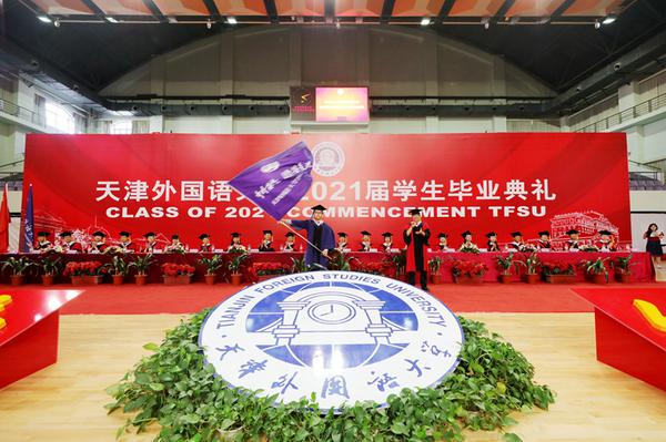 中外求索天外有冥鸿,德业竞进喧歌荡九霄!在喜迎建党100周年之际,我校2021届学生毕业典礼于6月17日下午在马场道校区体育馆隆重举行。全体校领导、校学位评定委员会委员代表,相关部门、各学院负责同志和导师代表及2021届毕业生参加了典礼。