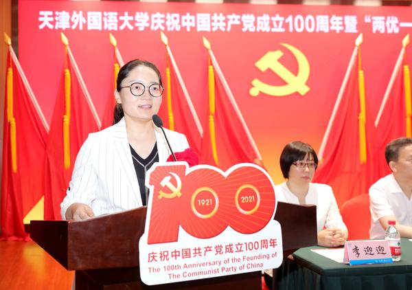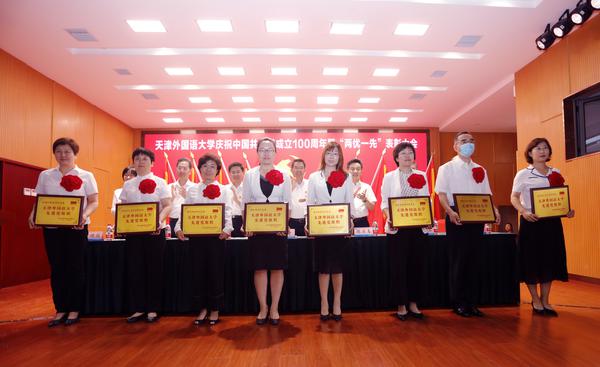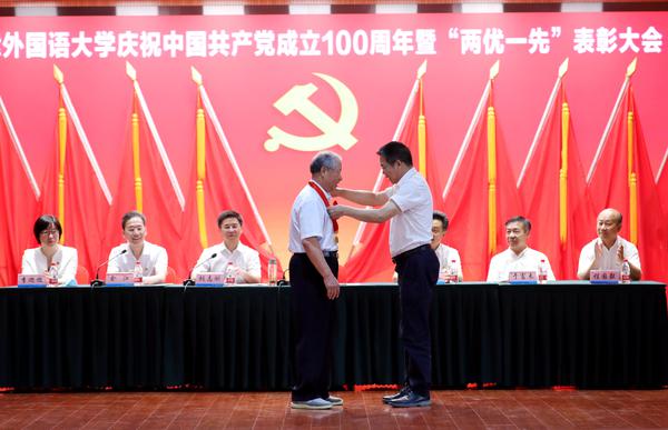 作为获奖先进个人和先进集体代表,“光荣在党50年”老党员李长海,欧洲语言文化学院党委书记安娜、国际关系学院党委书记何锐鹰、英语学院团委副书记赵元元、国际传媒学院学生党员刘孟慧瑾先后发言,讲述了他们坚定理想信念,立足本职工作,忘我拼搏奉献的先进事迹。