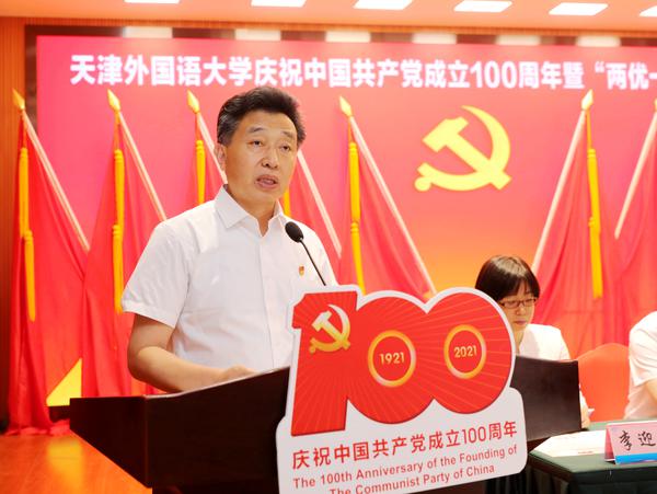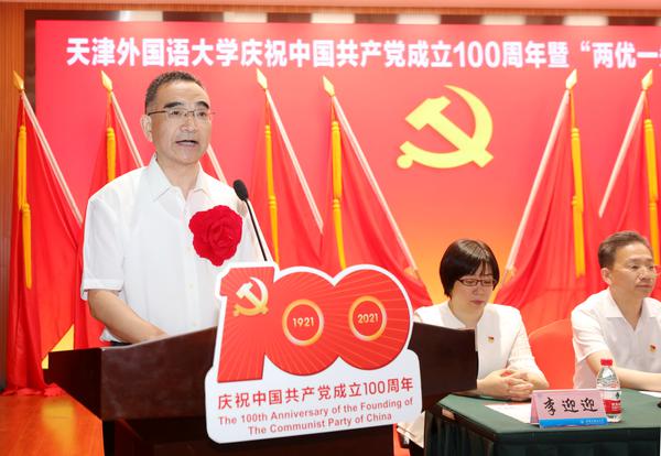 校党委书记殷奇在讲话中强调,今年是中国共产党成立100周年,也是“十四五”规划开局之年,全校各级党组织和广大党员干部要紧密结合正在开展的党史学习教育,始终把党的建设作为根本性建设,传承红色基因,赓续红色血脉,不断提高党的建设质量,不断彰显基层党组织的战斗堡垒作用和党员的先锋模范作用,为建设特色鲜明的高水平外国语大学做出新的更大贡献。他向全体党员提出三点希望:一是铭记党的历史,持续加强党的政治建设,不断提高政治判断力、政治领悟力、政治执行力;二是坚守党的初心使命,更加自觉地把以人民为中心作为根本价值取向;三是坚持做好党的领导、党的建设和全面从严治党各项工作,为特色鲜明的高水平外国语大学建设,提供坚强的政治保障、组织保障。