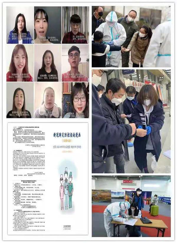 学院党总支带领全体教师员工,多措并举,服务国家“一带一路”倡议,开设非通用语专业15个,特别是响应天津市发展需要,成立蒙古语专业,实现了从无到有,从弱到强的突破性发展。学院以“译”为翼,在“疫”线书写担当,在接到紧急工作任务后,无论是刚刚新婚的年轻老师,还是家中孩子无人照顾的年轻妈妈,教师党员克服种种困难,迅速成立了一支32人的翻译突击队和72人的党员突击队,他们前往滨海国际机场、社区,做好现场翻译、外籍人员沟通解释和情绪疏导任务近百次。线上突击队连续3个月每天承接市委宣传部、外办等翻译任务,为各市区翻译了告知书、多语种条幅、抗疫宣传漫画和防疫物资等文件,外翻中13万字,中翻外19万字,录制了韩语、阿拉伯语、斯瓦希里语等13个语种的入境人员健康提示视频。师生积极报名应急外语服务人才库,参与的语言志愿服务队获评全国优秀志愿集体。学院荣获“新冠肺炎疫情防控工作先进党组织”称号;韩语系教工党支部“初心展本色,战疫显担当”主题党日活动获评教育系统“创最佳党日”;金慧子、苑维乐、金欣3名教师获新冠肺炎疫情防控工作优秀共产党员荣誉称号;津南区团委、南开区街道致来感谢信等。王杉钐的抗疫志愿服务事迹收录在《津门战疫的平凡英雄》一书中,作为唯一一名大学生志愿者证书在天津博物馆展出。
