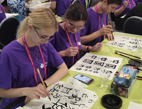 受华为乌克兰分公司邀请,基辅国立语言大学孔子学院承担了本项目中的中国文化讲座和体验活动,共举办中国文化讲座四场,分别为:《汉语简介》《中国文化概述》《中国书法》和《中国茶文化》。同时,孔子学院还组织了书法练习、茶艺表演、中国传统服饰展等文化体验活动,受到参加者的欢迎。