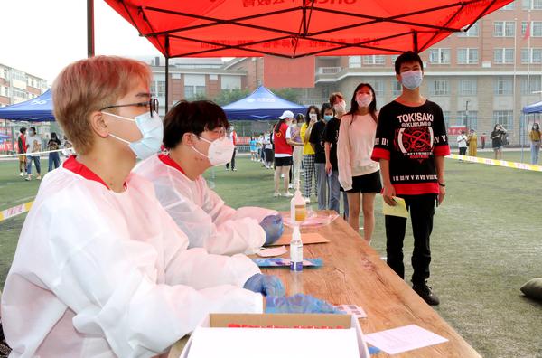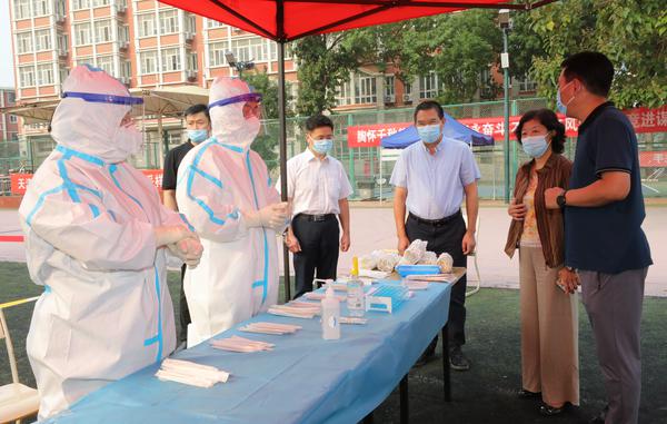 根据市教委及河西区疫情防控有关要求,为做好秋季学期校园疫情防控工作,9月11日上午,我校马场道校区顺利完成4560名外省区返津学生核酸检测,结果全部为阴性。 本次检测由属地桃园卫生服务中心执行。河西区副区长李丽君、区卫健委党委书记郭金琦及区卫生监督所、区疾控中心等部门负责同志,校党委书记殷奇、副书记胡志刚到现场指导检查并慰问工作人员。