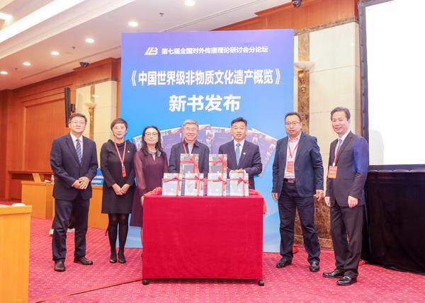 由我校副校长余江教授主编的“十三五”国家级重点图书出版规划项目《中国世界级非物质文化遗产概览》(多语种版)在会上进行了新书发布。余江还就学校近年来在中央文献外译、学术外译、文化外译等方面取得的丰硕成果进行了重点推介。
