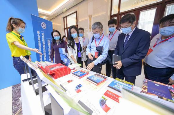 展位上,两块“天外蓝”色的导视牌讲出了天外故事,10余幅经典照片记录了天外人联结中外、沟通世界,观点交锋、文化交融的精彩瞬间。走近展台,由我校专家学者翻译的近40余部党和国家重要文献外译作品、中国传统文化外译作品依次陈列,十分震撼,吸引与会专家、学者的驻足观看,大家纷纷为天外多年来服务国际传播工作的成果点赞。