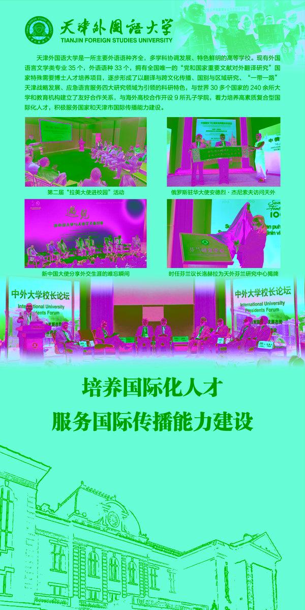 其中,“天津国际传播的重镇和高地”部分,对南开大学、天津大学、天津师范大学以及开云体育进行了重点推介。电子显示屏上循环播放的我校2021版形象宣传片《天外有冥鸿 意欲歌九霄》,通过“应需而生 蓬勃发展”“学贯中西 融通中外”“勇于担当 “译”往无前”三个篇章,展现了天外为党育人、为国育才,在构建人类命运共同体的伟大实践中,用世界人民乐于接受的方式、易于理解的语言,讲述好中国故事,传播好中国声音。
