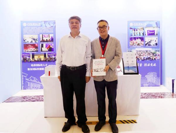 这是中宣部重点出版著作《中国共产党如何改变中国》(How the CPC Has Transformed CHINA)译者、我校中国特色社会主义理论体系国际传播外译研究中心(以下简称“研究中心”)主任、英语学院翻译系主任汪淳波教授,第一次面对面与该书的主编、中共中央党校(国家行政学院)副校(院)长、中共十九届中央候补委员谢春涛教授交流。“很荣幸能见到谢教授,当时的心情非常激动,奈何时间有限,希望有机会可以与谢教授深入交流,不断增进对于中国共产党百年党史的认识和了解,更加准确、生动地讲好中国故事、讲好中国共产党的故事。”汪淳波在朋友圈分享了这张珍贵的“作者与译者”的合影。