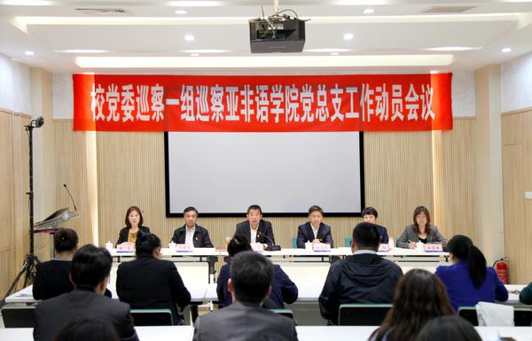 党委巡察办、巡察组全体同志,欧洲语言文化学院党委、亚非语学院党总支和国际关系学院党委领导班子成员、全体教师及学生代表参加了会议。