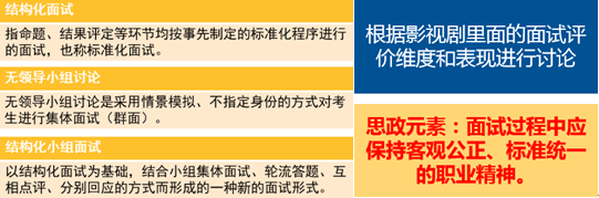 教师在讲授结构化小组面试与结构化面试的主要区别的同时,运用视频资源让学生深入了解结构化小组面试的实施流程,并进一步明确结构化小组面试的能力考查范围。