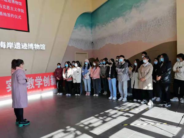 为深入贯彻习近平总书记在全国学校思想政治理论课教师座谈会上的讲话精神和习近平总书记“七一”重要讲话精神,进一步落实“‘大思政课’我们要善用之”重要指示,近期,马克思主义学院持续推进“行走的最强思想”实践教学改革创新,组织300余名师生来到滨海新区天津古林海岸遗迹博物馆,举行实践教学基地共建仪式并开展现场教学。