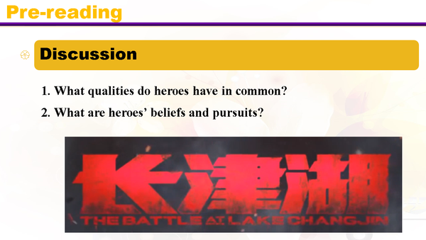 1.从热映电影《长津湖》入手,引出英雄主题。