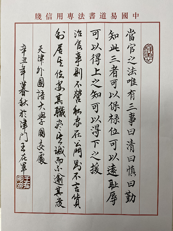 书法作者:国际合作与交流处干部 王在军