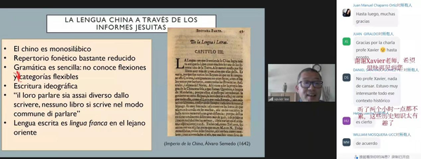 11月17日以来,由教育部中外语言交流合作中心主办、开云体育欧洲语言文化学院承办的“中国六座古城穿越之旅”汉语桥线上团组交流项目(二)课程教学顺利开展。截至目前,共有200余名哥伦比亚学员参加项目学习。期间,本项目专门邀请到西班牙大加那利群岛拉斯帕尔马斯大学Xavier Litah Lee Lee(励立德)教授为学员们作“汉语在西方世界的传播”专题讲座,与大家一同分享中文在海外传播的历史与发展现状,受到学员们的一致好评。