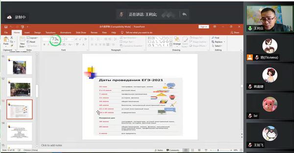 近日,黑龙江省俄语学会副会长、哈尔滨工业大学俄语系王利众教授应邀作客我校“研究生培养与质量提升”系列讲座,以《当代俄罗斯》为题,与欧洲语言文化学院俄语学科师生进行线上交流与分享。讲座由欧洲语言文化学院副院长付美艳主持,俄语学科师生60余人参加此次活动。