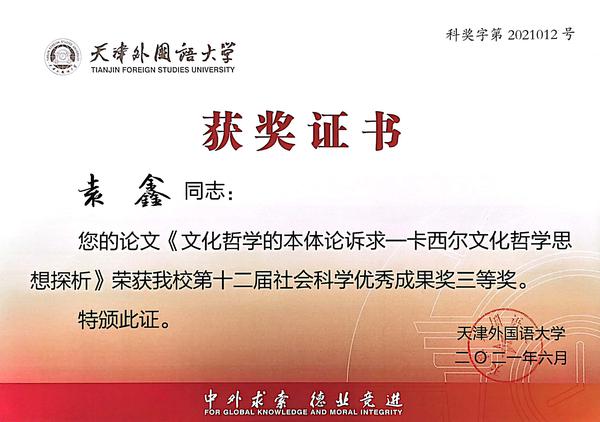 《文化哲学的本体论诉求------卡西尔文化哲学思想探析》发表于《世界哲学》(ISSN:1671-4318),CSSCI中文社会科学引文索引来源期刊,北京大学《中文核心期刊要目总览》来源期刊;文章刊发在2020年第1期。