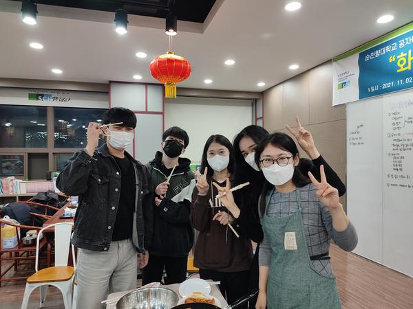 11月16日的饮食文化体验活动中,孔院汉语教师及韩国职员带领大家共同制作了中国的麻辣香锅和韩国的泡菜炒饭。中韩学生以小组为单位,共同体验了美食制作的全过程。