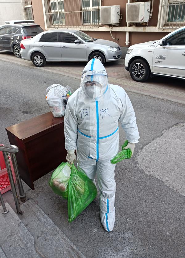 穿起防护服变身“大白”,刘向平拉着陈欣在宝业馨苑社区、赵北村党群服务中心门口拍了张合影,随即投入紧张的工作当中。兄弟俩在学校支援津南区抗疫突击队临时党支部的带领下,一同进入疫情封控小区,负责社区196户居民的核酸检测、生活保供、值班值守、疏导问询等工作,及时解决封控居民急难愁盼的问题。他们与突击队的其他成员被分成三组,每天采取“四班三运转”的方式轮流上岗,踏着熹微的晨光出门,顶着冬夜的寒风返回驻地,累了就窝在咸水沽三中七年四班教室里的行军床上睡一会儿,教室后面黑板上悬挂着的党旗就是支撑他们迎难而上的信仰。他们可以是物资“搬运工”,可以是信息“通讯员”,可以是前线“侦察兵”,每一名党员就是一面旗帜。三九严寒之中,他们用坚守和执着温暖着津城百姓。