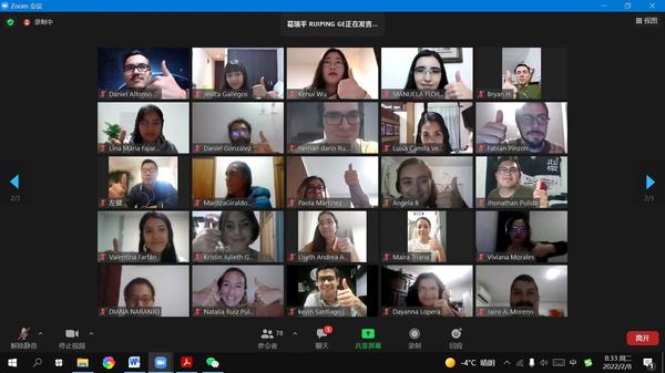 哥伦比亚当地时间2月7日19点,国际中文教师奖学金线上项目------哥伦比亚塔德奥大学孔子学院一学期汉语研修班举行开班仪式,副校长程国毅出席开班仪式并致辞。我校国际合作与交流处、继续教育学院、塔德奥大学孔子学院等有关负责同志与60余名哥伦比亚学员参加活动。