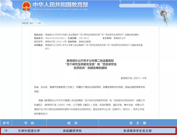市委常委、市委教育工委书记王庭凯来我校调研指导工作 殷书记党史学习教育 开学第一课 陈校长 微党课比赛 合唱没有共产党就没有新中国 高级翻译学院英语笔译学生党支部获批第二批全国高校“百个研究生样板党支部” 学校隆重召开“庆祝中国共产党成立100周年暨‘两优一先’表彰大会” 吴浩楠荣获天津市大中小学“学史增信 青春逐梦”主题演讲比赛一等奖