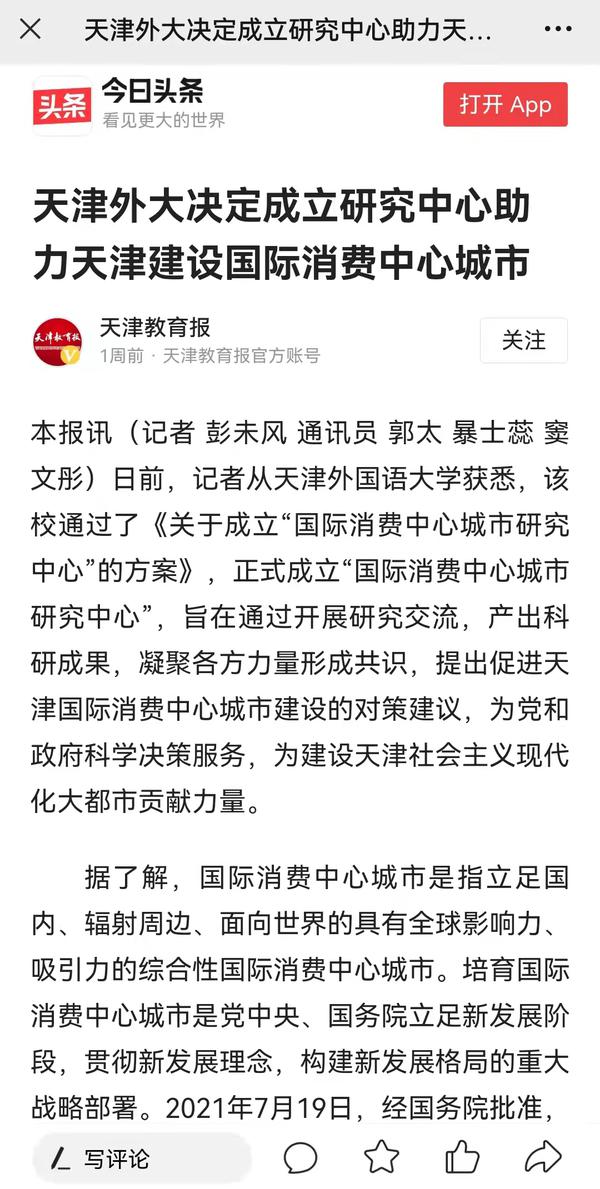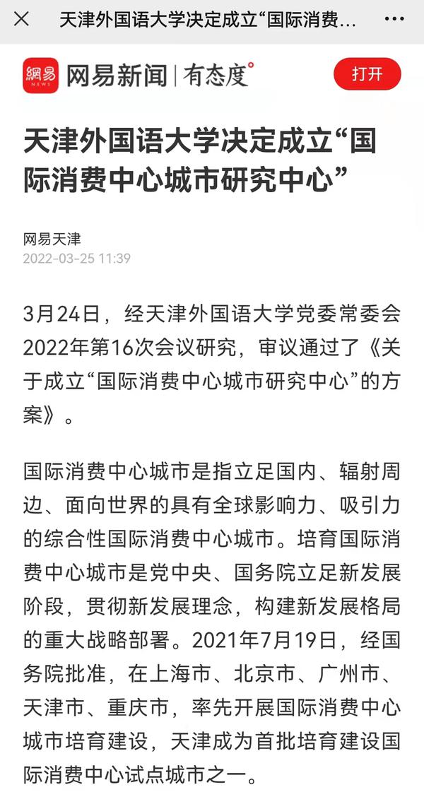 3月24日,开云体育党委常委会审议通过了《关于成立“国际消费中心城市研究中心”的方案》,正式成立“国际消费中心城市研究中心”,旨在通过开展研究交流,产出科研成果,凝聚各方力量形成共识,提出促进天津国际消费中心城市建设的对策建议,为党和政府科学决策服务,为建设天津社会主义现代化大都市贡献力量。人民日报客户端、今晚报、天津教育报、天津工人报、网易天津等媒体对此进行了报道。