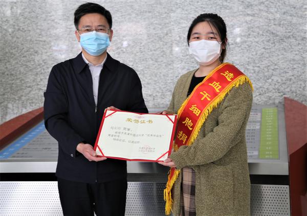 “能够成功捐献造血干细胞,我感觉非常激动,也很庆幸自己能够帮助他人。虽然刚刚入职,对工作有所担忧,但各方面的大力支持也让我没有了后顾之忧,我很感动。我也希望能够通过自己的力量带动更多爱心人士加入到捐献队伍中,为这项造福社会的事业添砖加瓦。”作为院青年志愿者协会成员和班级骨干,赵彩彤在校期间积极投身学院班级建设,乐于奉献,主动参加各种公益服务。