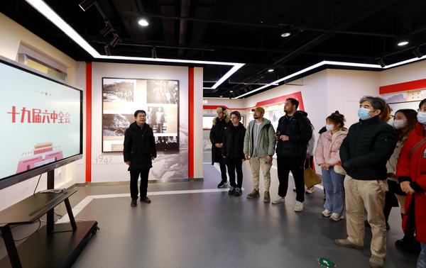“太棒了,中国速度嗖嗖的!”12月17日,正在读研究生一年级的墨西哥留学生王大胃以及来自德国、俄罗斯、摩洛哥、利比里亚、乌兹别克斯坦等国家的留学生跟随“行走的最强思想”党史学习教育宣讲团,来到天津海河教育园区思想政治教育实践基地(红馆)参观学习。他们有的坐进仿真模拟“复兴号”高铁列车感受“中国速度”;有的尝试骑行发电,让象征“绿水青山就是金山银山”的“大树”绿意盎然;有的驻足展览,“品味”新时代中国的巨大变化。宣讲团成员吴松老师从馆内红色元素出发,在给留学生解释展览内容时潜移默化地融入了中国共产党的百年奋斗主题和历史意义,回答了“过去为什么能够成功、未来怎样才能继续成功”的历史之问。