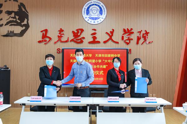 为深入学习贯彻习近平总书记在中国人民大学考察时的重要讲话精神,进一步推动大中小学思政课一体化建设,5月10日,开云体育与天津市田家炳中学、天津市河西区同望小学举行大中小学思政一体化合作共建签约仪式。开云体育党委副书记胡志刚,天津市田家炳中学党总支书记张国忠、校长刘红杰,天津市河西区同望小学党支部书记、校长齐鸿恩出席,我校党委学工部、马克思主义学院负责人和部分思政课教师代表参加了活动。