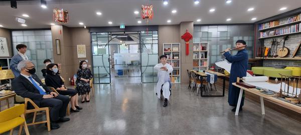 5月11日,由顺天乡大学孔子学院与韩国外国语大学孔子学院两所孔子学院共同开设的“中国茶的理解与茶道”“太极文化表演”共享课进行了运行前试讲。共享课分别由韩国外国语大学孔子学院教师陈吉文、顺天乡大学孔子学院教师刘飞主讲。课程审核专家分别为顺天乡大学教学副校长金在弼、韩国外国语大学孔子学院中方院长姜颖、顺天乡大学孔子学院韩方院长朴炯春和顺天乡大学孔子学院中方院长赵华。