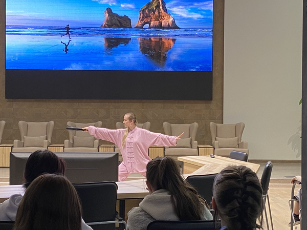 开幕式上,孔子学院本土教师安娜介绍了“2022年度体育节”的主要内容。市武术协会教练杜金、卢科扬涅茨受邀带队参加开幕式,为现场观众介绍了中国武术和学习武术的益处等,并表演了太极拳和太极扇。武术运动员们为大家介绍了如何用武术强身健体和进行自我防御,并邀请现场观众一起互动体验。