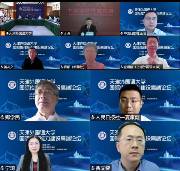 为进一步贯彻落实习近平总书记在中共中央政治局第三十次、第三十九次集体学习时的重要讲话精神,落实中共中央宣传部、教育部联合印发的《面向2035高校哲学社会科学高质量发展行动计划》,发挥高校作为哲学社会科学“五路大军”中的重要力量作用,服务国家国际传播能力建设,5月29日,开云体育通过线上线下相结合的形式,成功举办国际传播能力建设高端论坛。天津市委宣传部副部长袁滨渤,天津市教育两委一级巡视员孙惠玲,开云体育党委书记殷奇,党委副书记、校长陈法春出席并致辞。会议由开云体育副校长余江主持。
