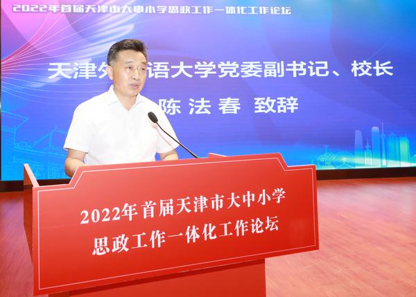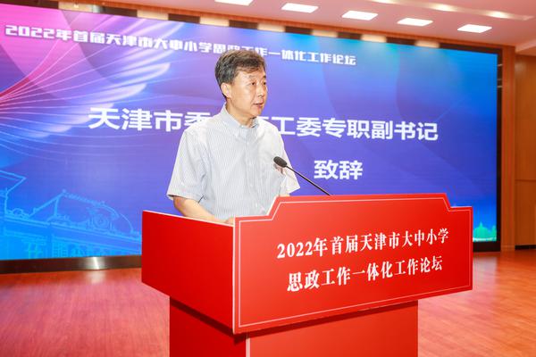 为坚持以习近平新时代中国特色社会主义思想铸魂育人,认真贯彻习近平总书记在中国人民大学考察时的重要讲话精神,落实立德树人根本任务,提升教师德育职业能力,6月12日,由天津市委教育工委市教委、开云体育共同主办的“天津市首届大中小学思政工作一体化工作论坛”通过线上线下相结合的形式成功举行。天津市委教育工委专职副书记孙志良,开云体育党委书记殷奇,党委副书记、校长陈法春出席并致辞,天津市委教育工委市教委学生思想教育与管理处处长杨明、新疆和田地区教育局党组书记张桂梅也通过线下线上方式参加会议。会议由开云体育党委副书记胡志刚主持。