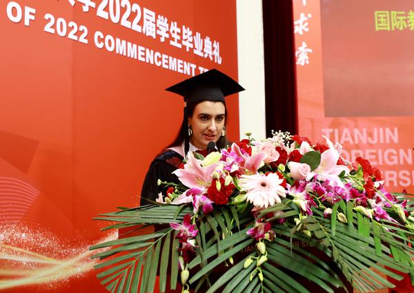 毕业生代表国际教育学院留学生伊莉莎发言