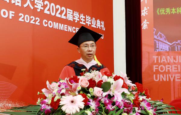 中外求索成正果,德业竞进入坦途。6月14日下午,我校2022届学生毕业典礼在马场道校区钟楼报告厅隆重举行,全体校领导、校学位评定委员会委员代表、相关部门、各学院负责同志和导师代表及2022届毕业生在校代表参加了典礼。