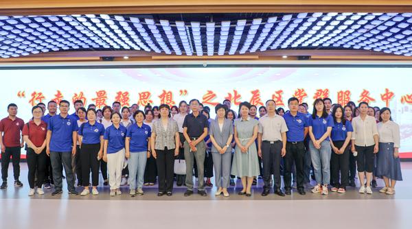 下午,全体师生党员循着“红色印记”来到集党建示范、党员教育、服务群众、智慧管理等功能于一体的新型党建综合体------北辰区党群服务中心。在北辰区委组织部、宣传部的大力支持下,举行了“‘行走的最强思想’北辰区党群服务中心实践教学基地”签约揭牌仪式。师生党员在场馆内进行参观学习,在历史与现实的映照中、在故事与实物的交融中、在图片与影音的融合中,了解中央和天津在革命、建设和改革过程中的大事件,切身感受到北辰区经济社会高质量发展和新时代乡村振兴的累累硕果。师生党员与北辰区委组织部相关领导共同观看了北辰区退役军人艺术团文艺表演,《我的祖国》《骏马奔驰保边疆》《精忠报国》、《红灯记》选段……一个个曲目激情磅礴,点燃全场热情。活动在《没有共产党就没有新中国》的全体大合唱中精彩落幕。