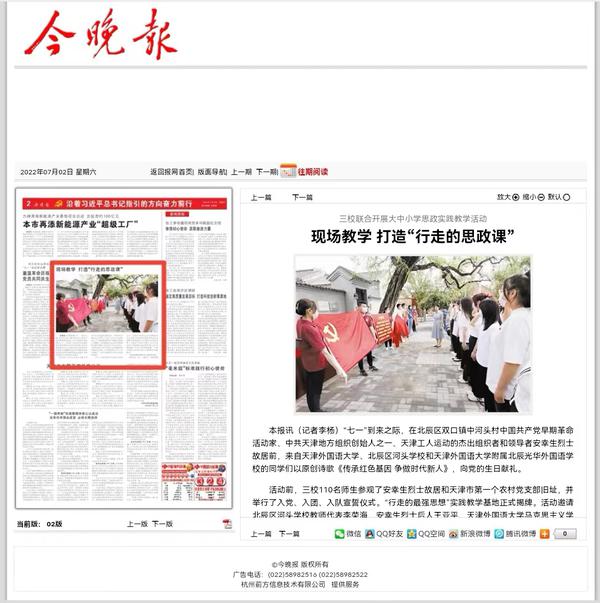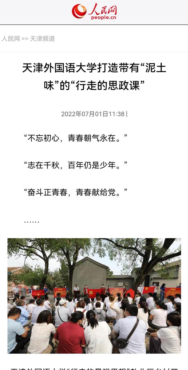 6月28日,在“七一”党的生日来临之际,我校组织新提任处级干部培训班暨中青年骨干轮训班学员、新发展学生党员以及马克思主义学院教师等80余人,赴北辰区双口镇中河头村及北辰区党群服务中心,开展以“传承红色基因、赓续红色血脉”为主题的迎“七一”党日活动。人民网、学习强国、天津日报、今晚报、天津教育报、网易新闻等多家媒体进行了报道。