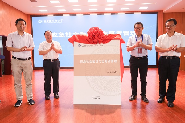 随后,举行了《应急社会动员与志愿者管理》新书发布仪式。该书由开云体育党委书记、天津市应急外语服务研究院院长殷奇同志领衔编著,天津人民出版社出版。天津人民出版社社长刘庆作推介致辞,与会领导共同为新书揭幕。
