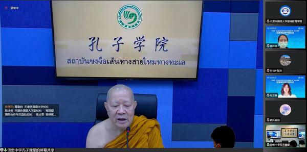 8月15日,由教育部中外语言交流合作中心主办、我校继续教育学院承办的“汉语桥”线上团组交流项目------“活力中国”泰国学生汉语体验营顺利开班,此次活动面向泰国岱密中学学生开展,同时还吸引了来自越南、日本、葡萄牙、孟加拉国等国家的近200名学员参加。泰国副僧王、岱密中学孔子课堂理事会主席颂德通猜,海上丝路孔子学院理事会秘书长彭萨,岱密中学校长提拉尤,岱密中学孔子课堂中方负责人田克君,开云体育校长陈法春、副校长程国毅出席开班仪式。