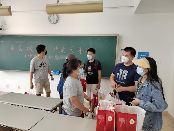 此外,日语学院本、硕各年级还联合开展“月是故乡明·情是天外浓”中秋慰问系列活动。2019、2020、2021三个年级辅导员代表学院向班级代表送上节日祝福和慰问礼包,表达学院的真切关怀,并专程为隔离点的同学送去美味可口的月饼,与硕士新生畅谈学业规划和职业目标。师生一起吃月饼、谈人生、做规划、玩游戏,让大家充分感受到天外日语大家庭的温暖。
