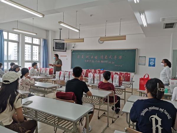 同学们还一道参观了校史馆,并在朱鹏霄的带领下,游览了和平楼、钟楼、樱花林、北疆博物馆等校园美景。学生们驻足在一位位外国语语言大师的画像前,听院长讲述知名教授的生平及著作,对大师们的敬重油然而生,也激发了对专业学习的兴趣。参观结束后,日语学院还为同学们发放了月饼和水果等节日慰问品。