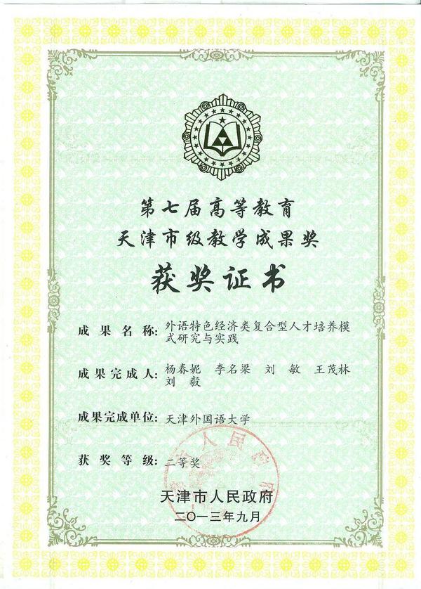 天津市级教学成果二等奖